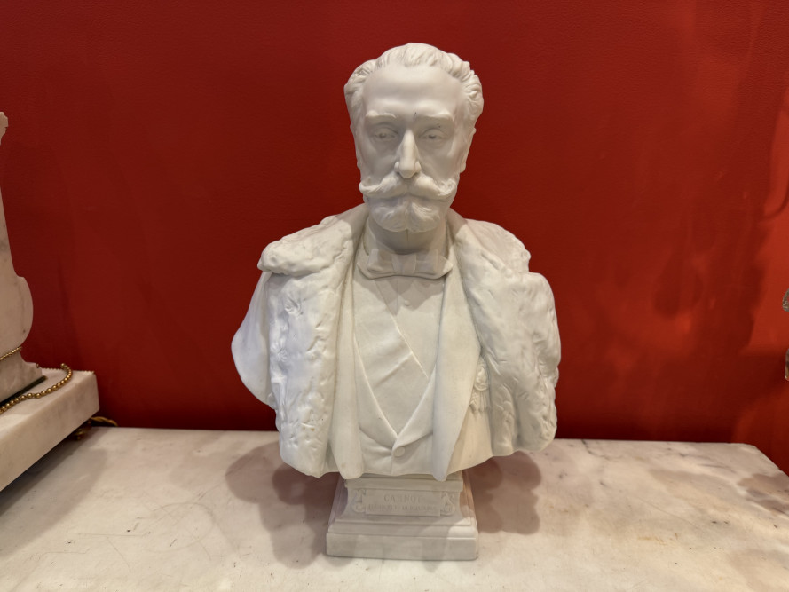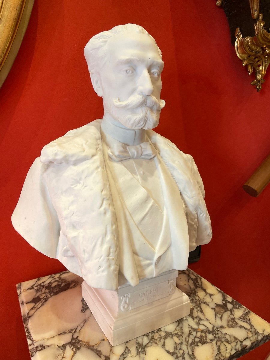 Buste en biscuit de porcelaine de Sèvres, signé du sculpteur, cachet de la manufacture et numéro.