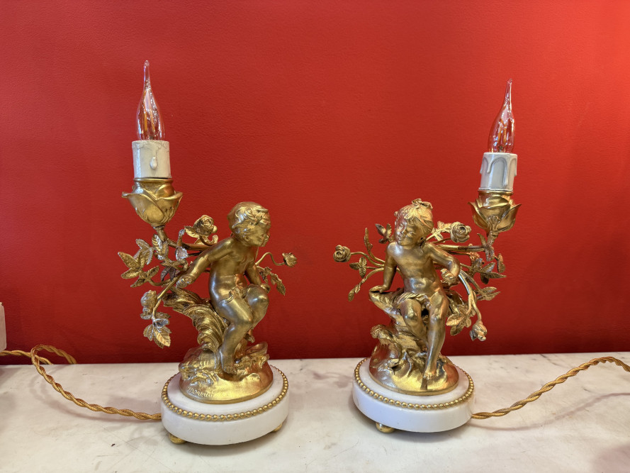 Les lampes comportent une paire de chérubins supportant une lumière.