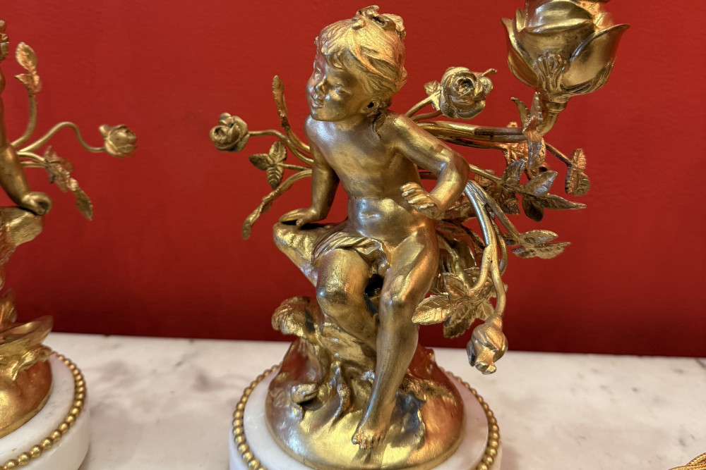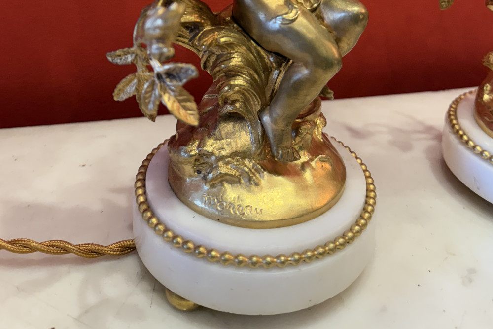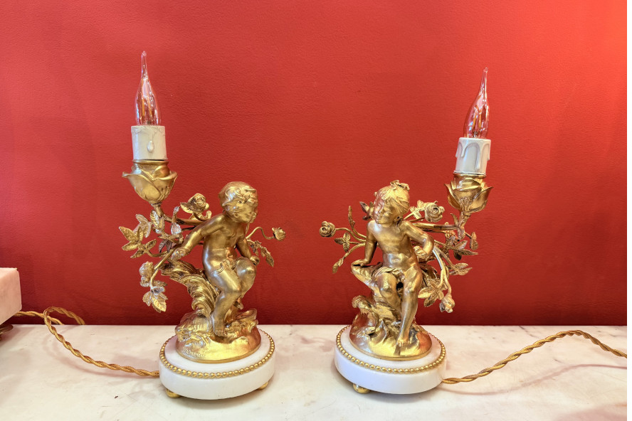 Les lampes comportent une paire de chérubins supportant une lumière.